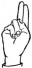 На ћирилици написано ОЛГА ЦАПУРЕЛОВИЋ састоји се из 15 слова [?]. Исписано ћириличном једноручном азбуком за глувонеме: